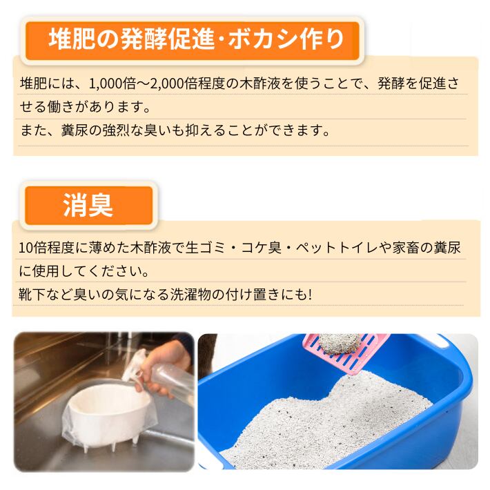 1,000倍~2,000倍程度の木酢液を使うことで醗酵を促進させる働きがあります。